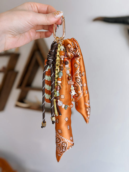 Scarf & Bead Layered Bag Charm | Orange & Brown - Gold