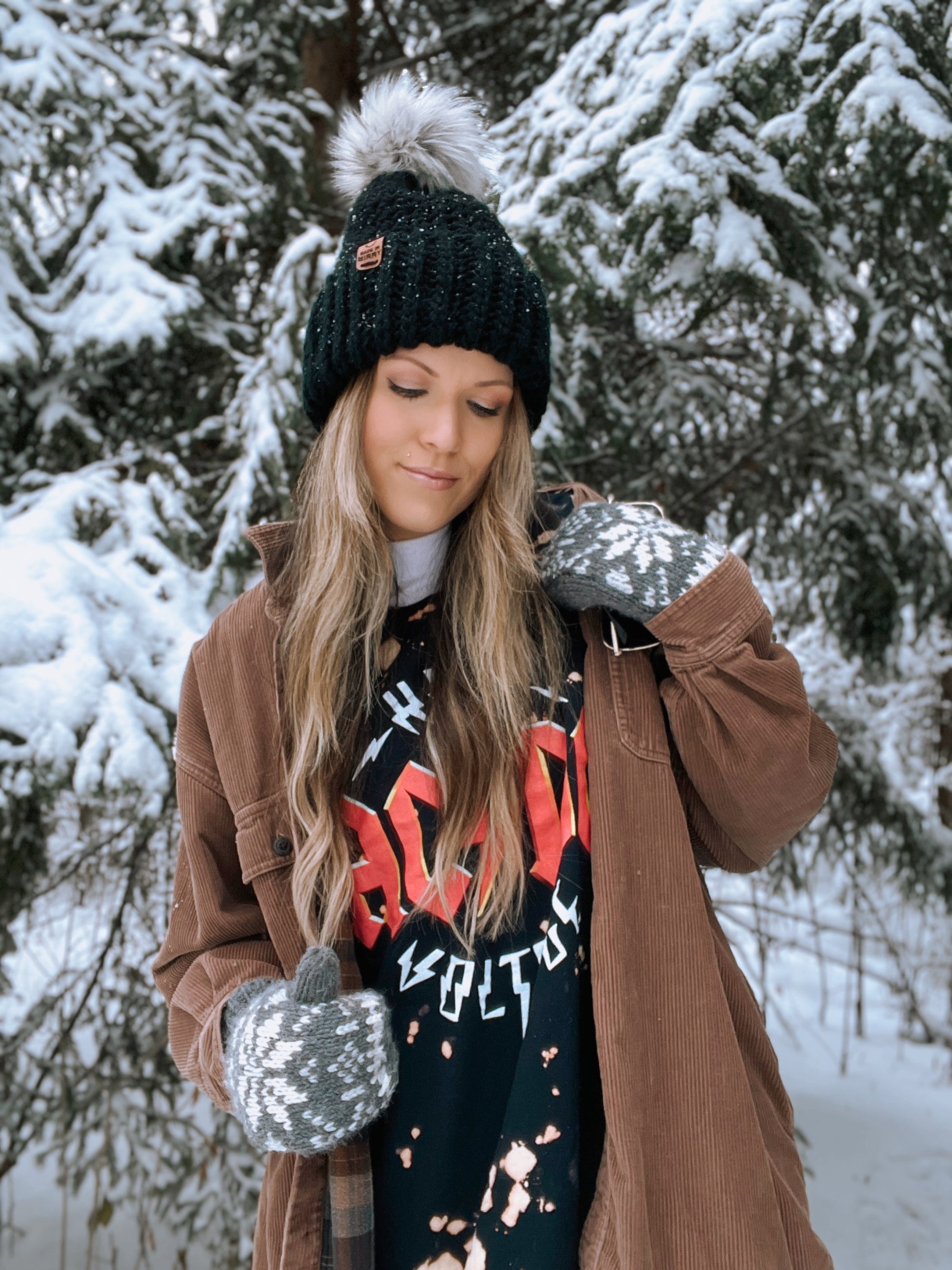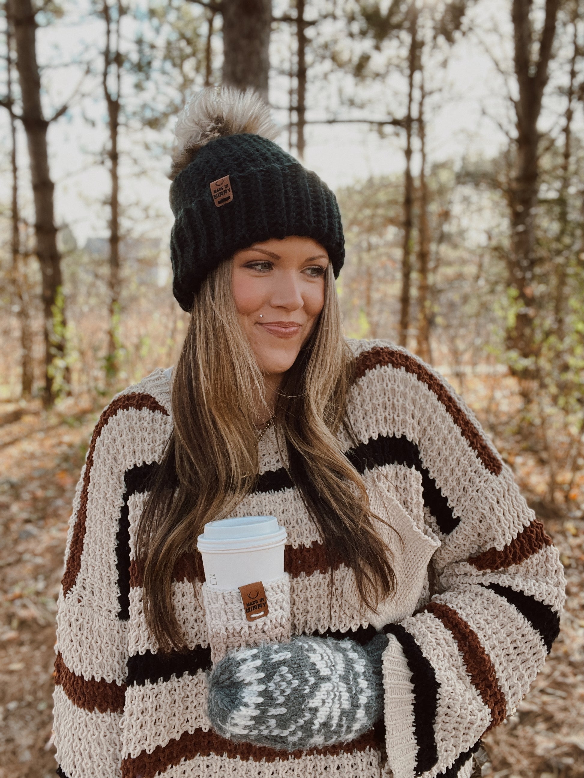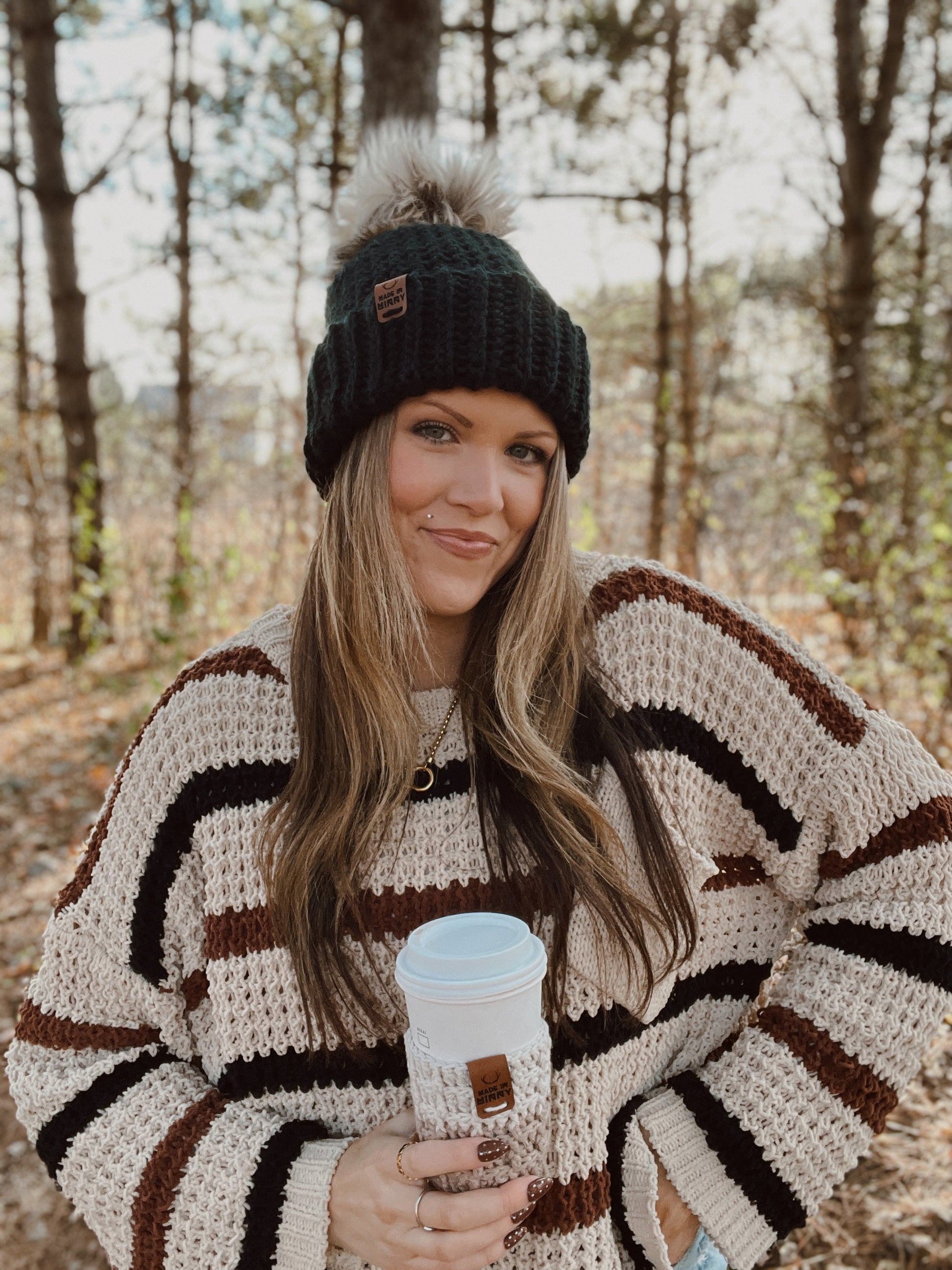 - handmade faux fur pom (the cream/tan multi pom color - not the gray from the winter photos)